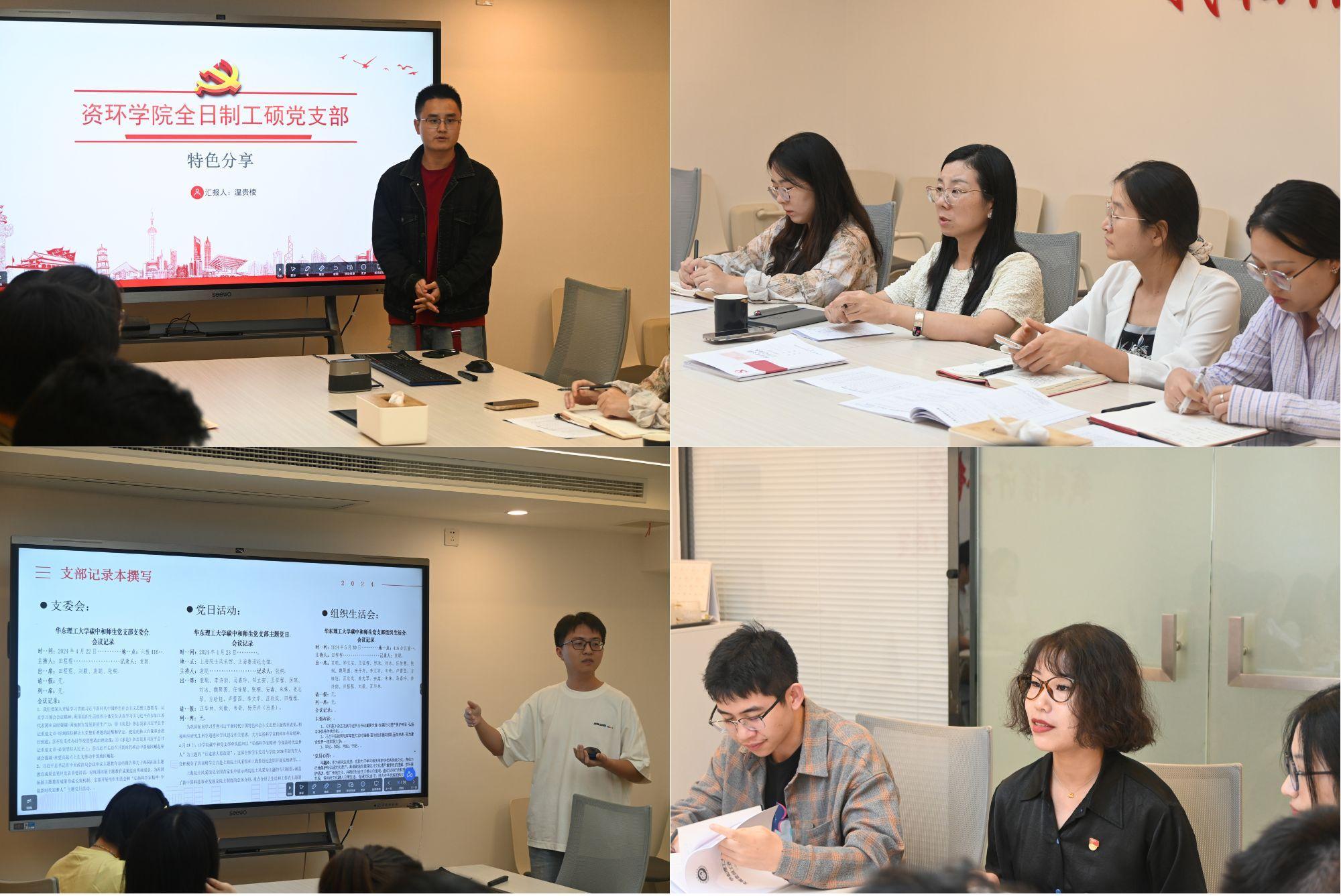 全日制工硕党支部与碳中和师生党支部书记做了交流发言,分别围绕支部青春河护河志愿服务项目开展、党支部“三会一课”工作经验、党建工作与业务工作融合等进行分享交流。
