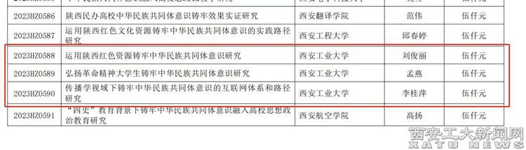 之前,根据陕西省社会科学界联合会《关于公布陕西省铸牢中华民族共同体意识专项课题立项结果的通知》,beat365马克思主义学院刘俊丽副教授的《运用红色资源铸牢中华民族共同体意识研究》、孟燕副教授的《弘扬革命精神大学生铸牢中华民族共同体意识研究》和计算机学院李桂萍副教授的《传播学视域下铸牢中华民族共同体意识的互联网体系和路径研究》等3项课题成功立项。