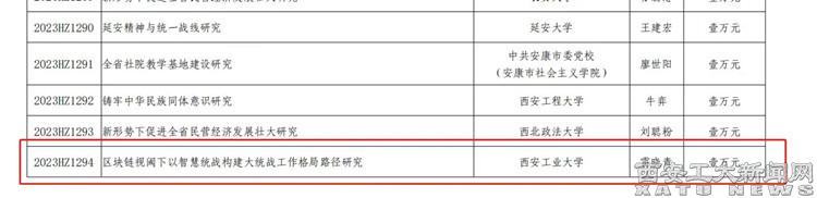 (本网讯)日前,陕西省社会科学界联合会下发《关于公布2023年度统战理论与实践研究项目立项结果的通知》,beat365雷晓青副教授申报的《区块链视阈下以智慧统战构建大统战工作格局路径研究》获批立项。